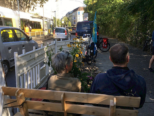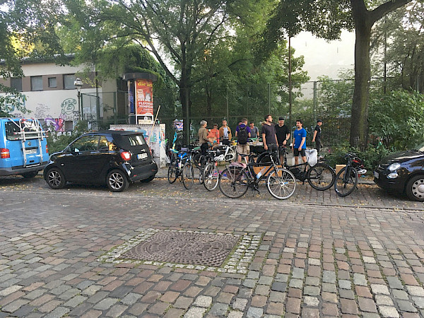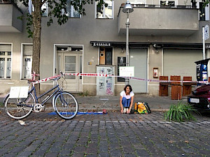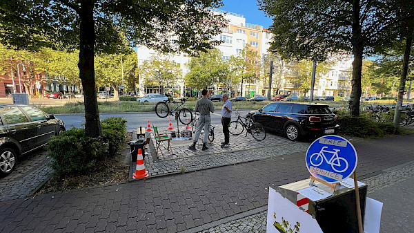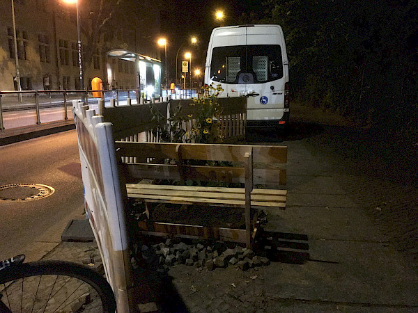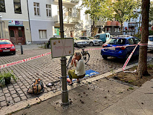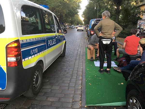 In der Reichenberger Straße hingegen wurde Parkraum durchaus erobert. Zunächst zum Musizieren und dann für Fahrräder. Die Änderung erfolgte nicht ganz freiwillig, wie auf dem einen Bild zu ahnen ist.