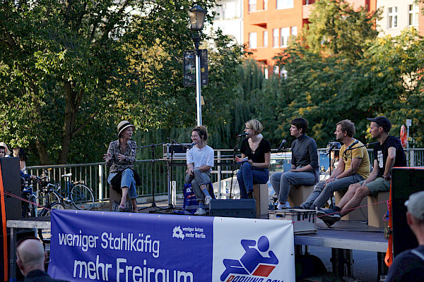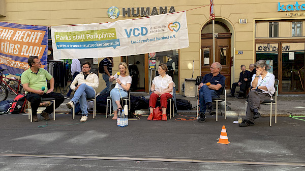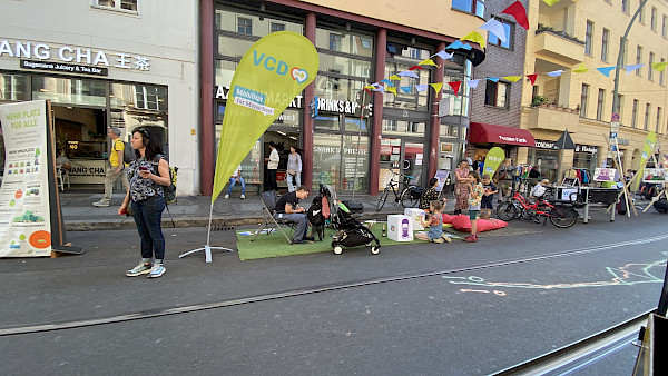 In der Friedelstraße wurde nicht nur gechillt, sondern auch diskutiert. Wie könnte es auch anders sein bei autofrei berlin (Foto Johann Schily)