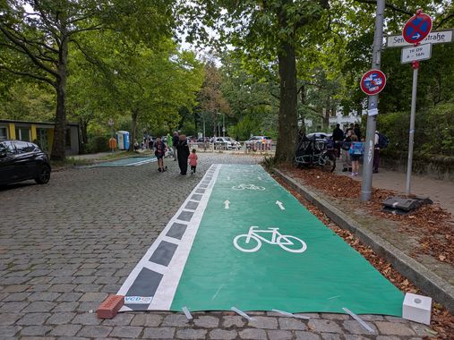 Die erste Aktion am Tage wurde vom VCD selbst mitorganisiert: Gemeinsam mit der Grundschule am Insulaner und dem Netzwerk Schulwegsicherheit Steglitz-Zehlendorf haben wir eine große Schulstraßen-Aktion im Hanstedter Weg umgesetzt. Die Straße, insb. die sonst mit Pkw zugestellten Flächen wurden autofrei und bunt bespielt, mit diversen Aktivitäten von Schüler*innen und mehreren weiteren beteiligten Organisationen. Mit geladenen Politiker*innen gab es eine ausführliche Diskussion. Einen Bericht zur Aktion mit Bildern gibt es hier.