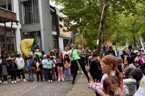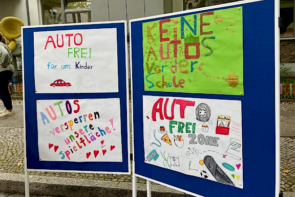 mobile Ausstellung mit konkreten Umsetzungsbeispielen zu Schulstraßen in Berlin